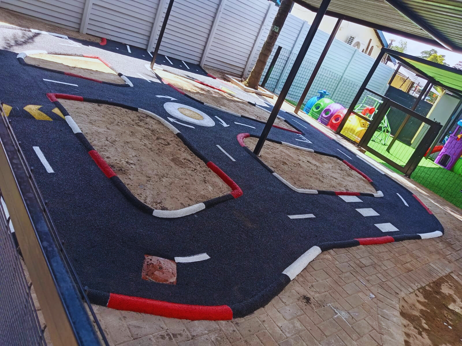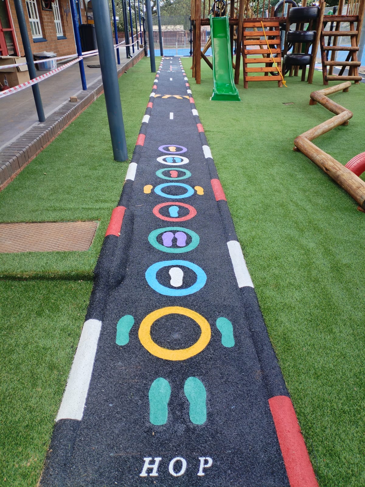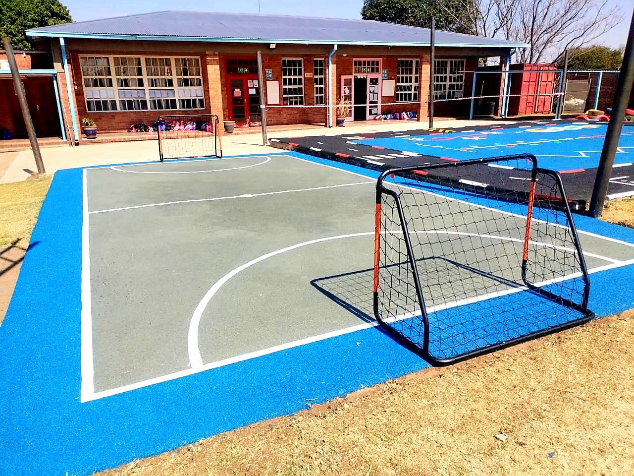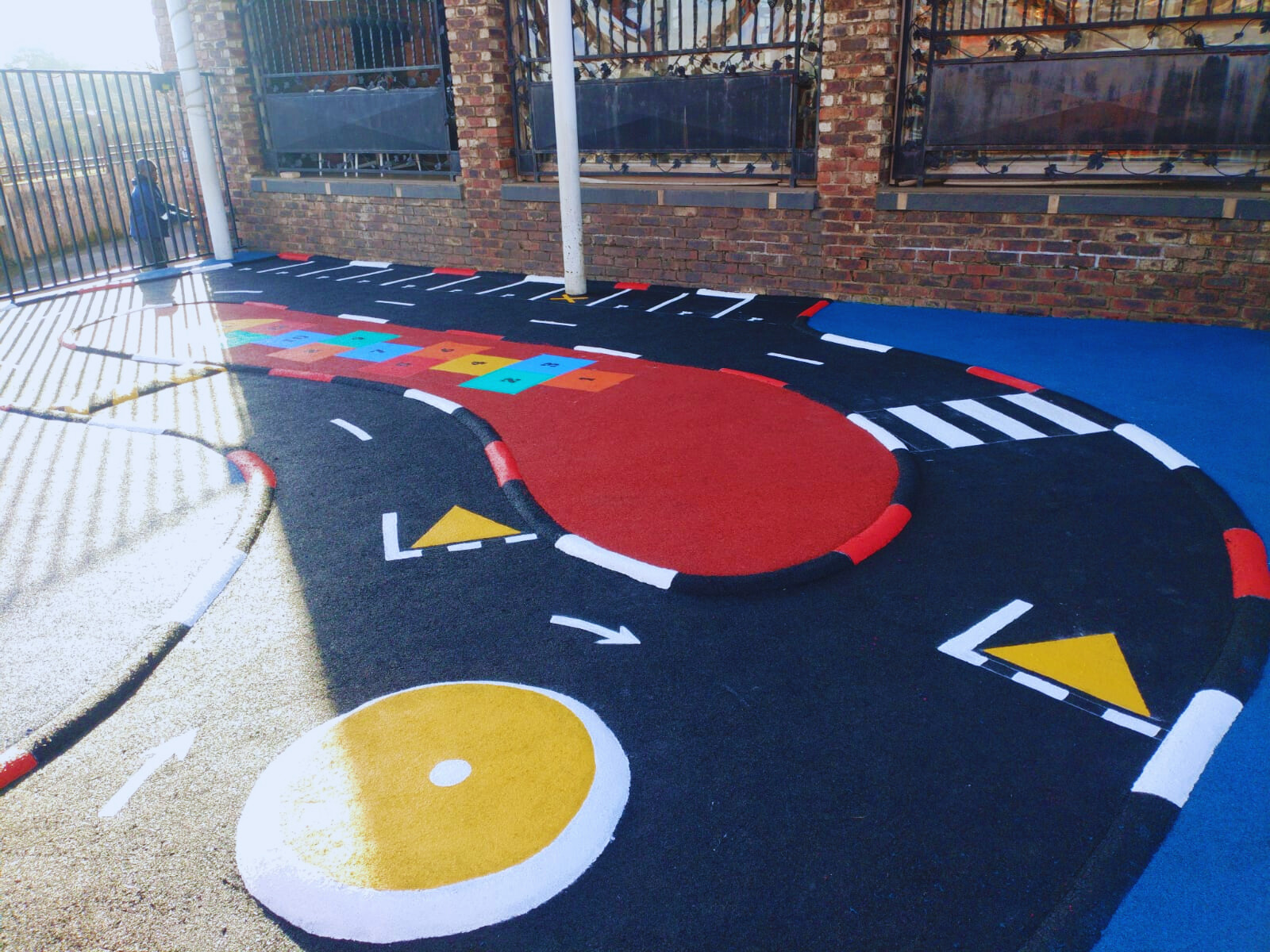 Wet-Pour rubber surfaces can also be used to create sports surfaces such as running tracks, multi-purpose game areas, daily mile tracks, kid's mini cycle tracks and other playground flooring designs.