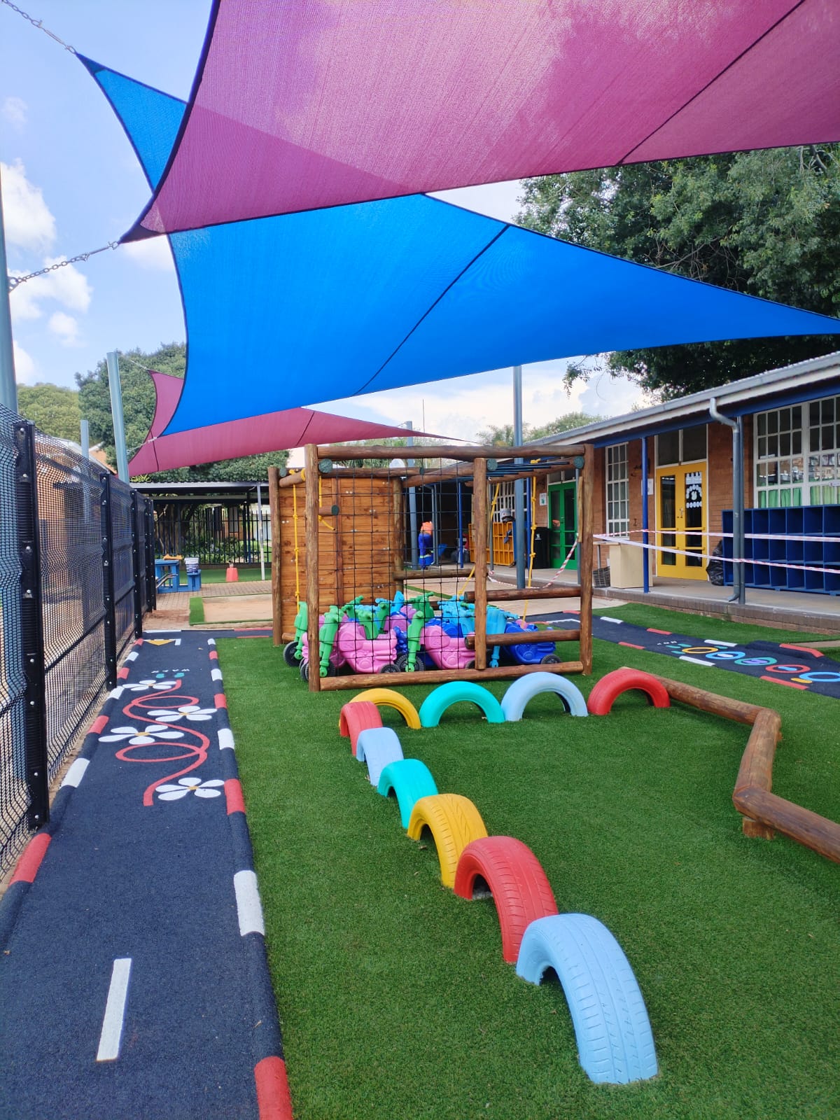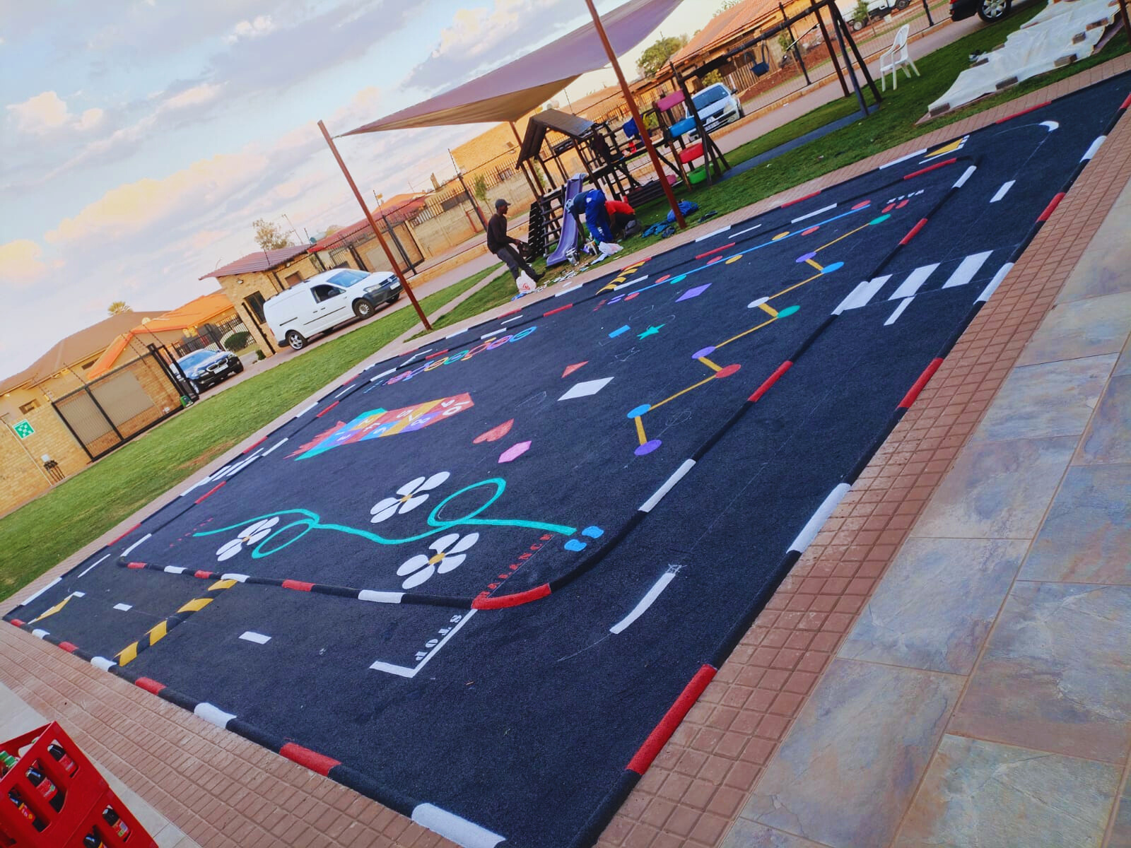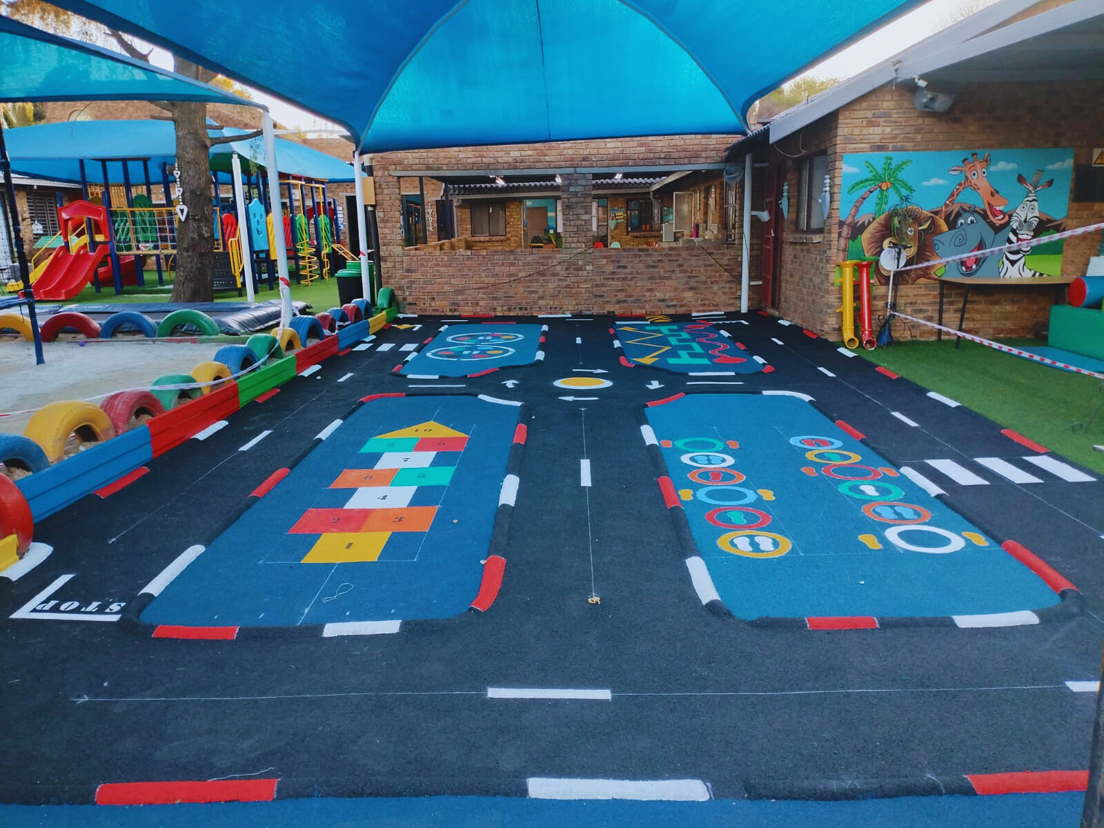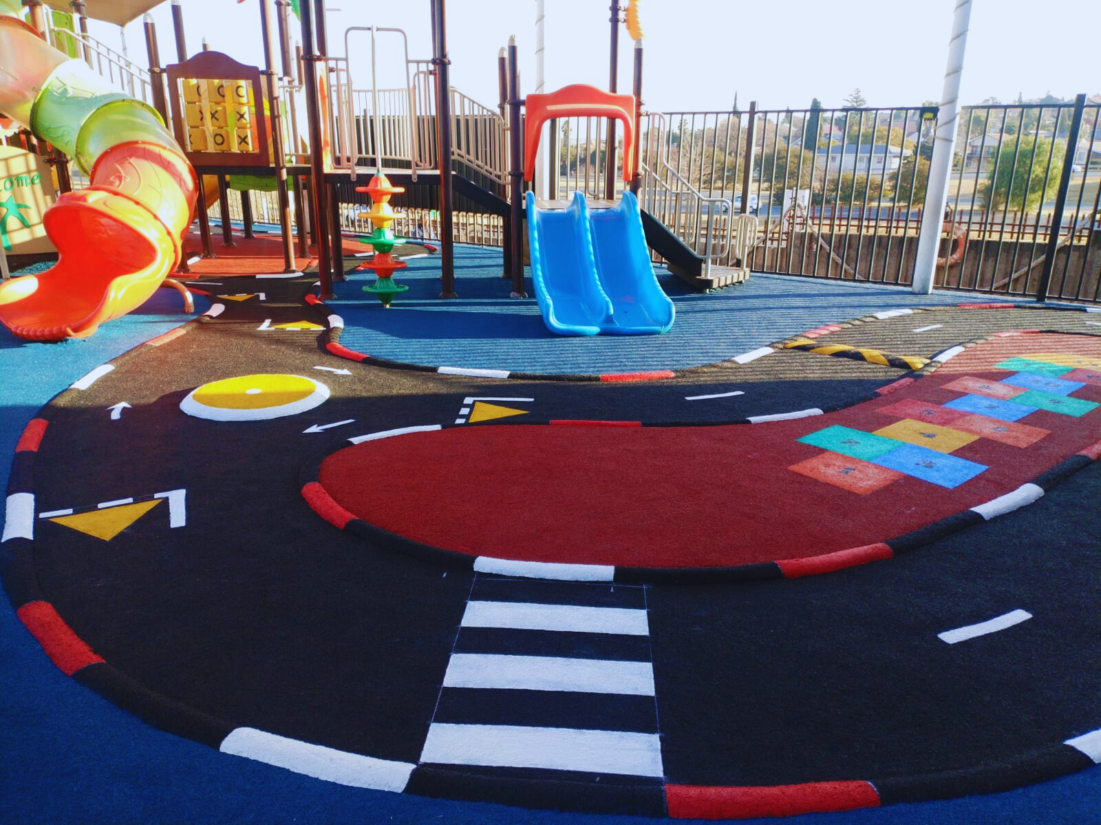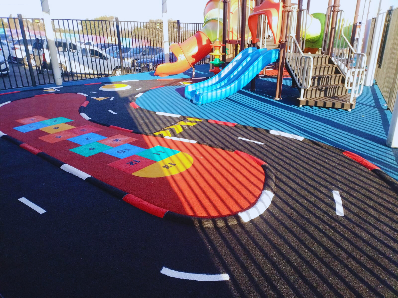 Wet-Pour rubber surfaces can also be used to create sports surfaces such as running tracks, multi-purpose game areas, daily mile tracks, kid's mini cycle tracks and other playground flooring designs.