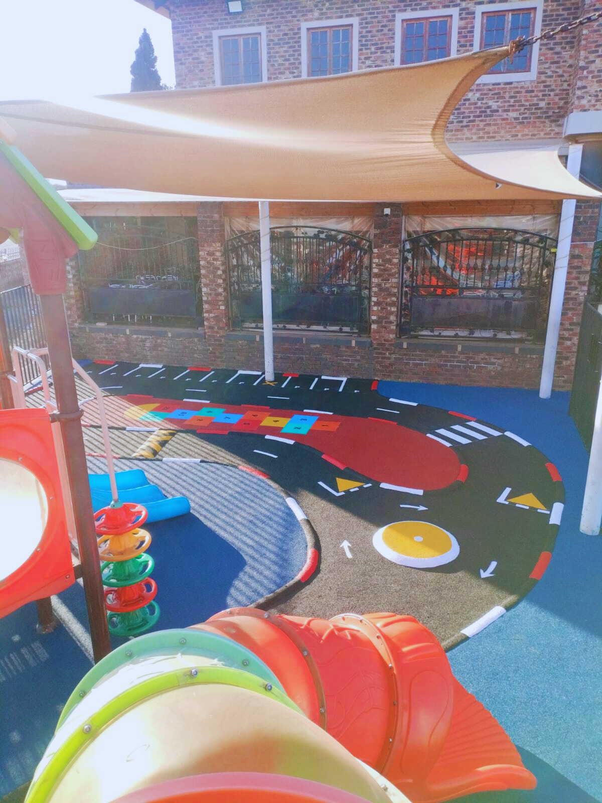 Wet-Pour rubber surface is an impact absorbing rubber surface most commonly used for school playground flooring and playground surfacing. Other applications include swimming pool surrounds, pathways, retail units, gyms and many more. Due to its impact absorbing effect the wet-pour rubber surface minimizes the risk of injury in case of a fall.
