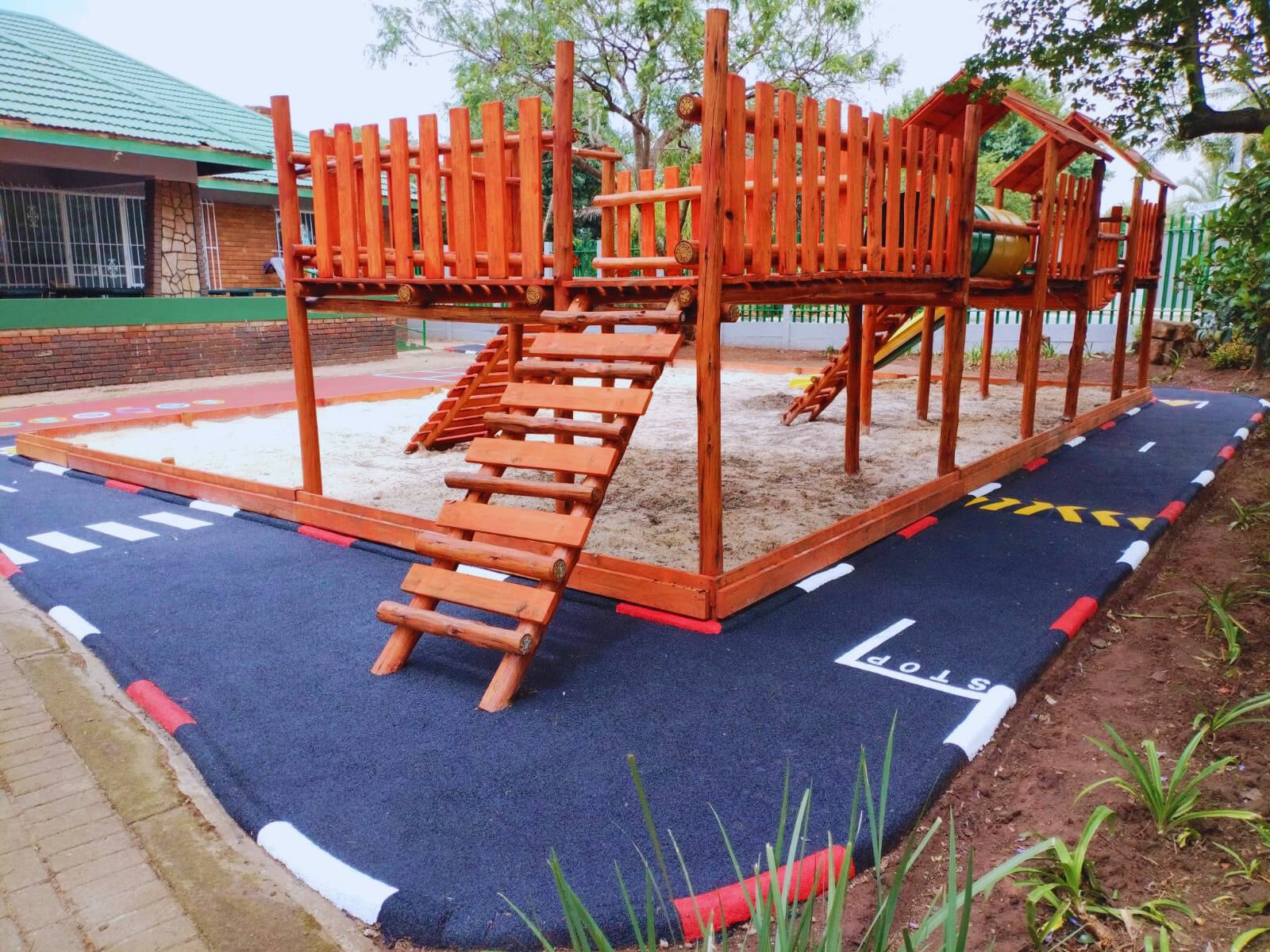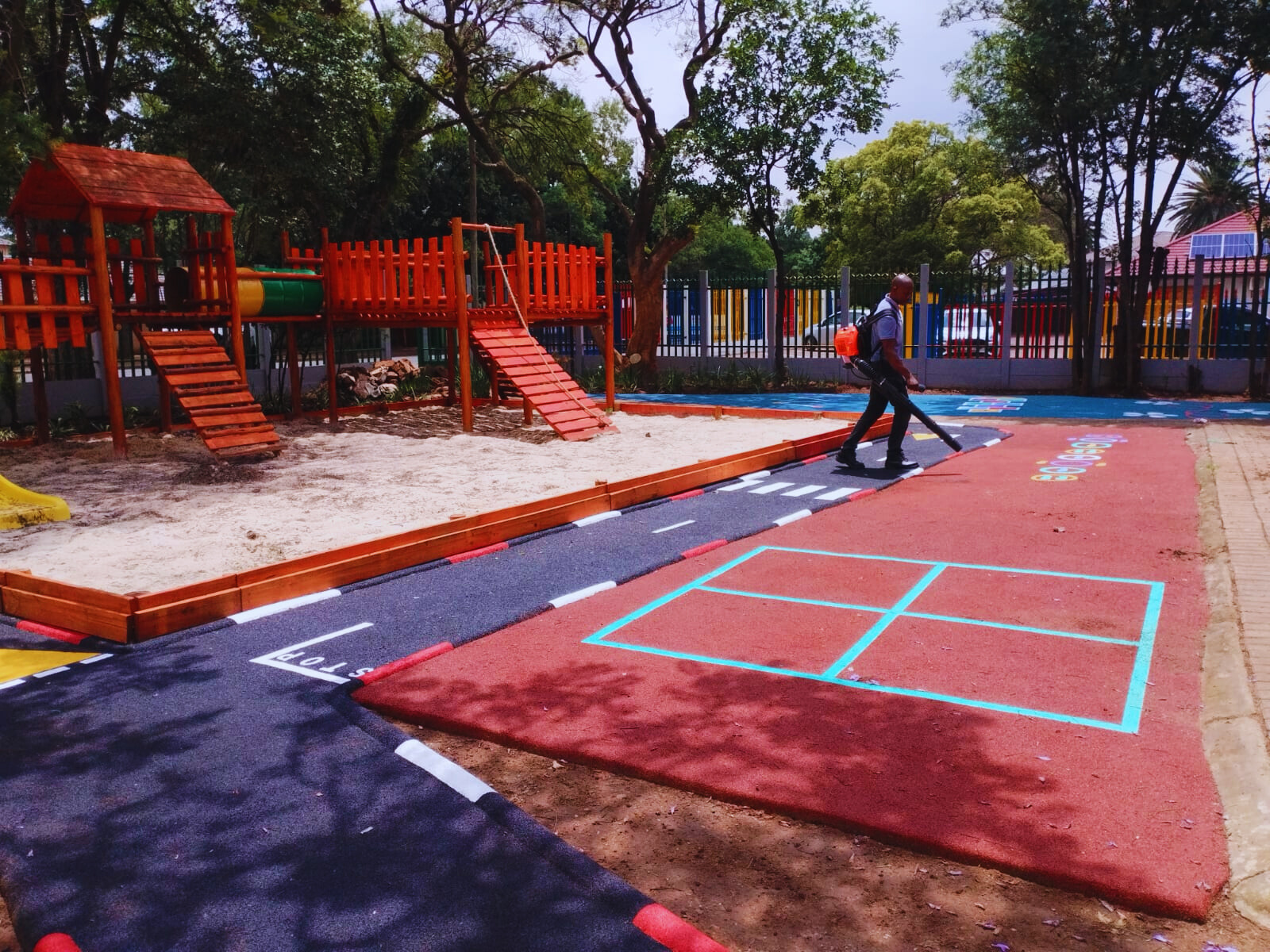 The rubber surface is durable and easy to maintain. After installation we provide a year guarantee with instructions on how to maintain it. If well maintained the wet-pour rubber surface can last for as long as 10-15 years.